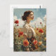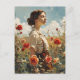 La postal captura una escena atemporal: una mujer, que recuerda a una época pasada, domina el atuendo de un granjero, de pie orgullosamente en medio de un mar de vibrantes rosas. Su ropa exuera simplicidad, reflejando el encanto rústico de la vida agrícola. Los rosas, cuidadosamente cuidados, crean un paisaje pintoresco, infundiendo la escena con una belleza nostálgica y pastoral. La postal resume un momento idílico congelado en el tiempo, celebrando tanto la gracia de la mujer como la natural elegancia del campo floreciente.