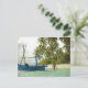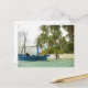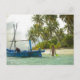 Postal Mujer en un pequeño barco de pesca tradicional,