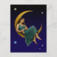 Una mujer durmiendo en una luna creciente en un cielo nocturno lleno de estrellas. Se puede personalizar el color de fondo, así como el color y la posición de las estrellas.