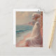 fascinante obra de arte de fantasía con una mujer etérea cubierta de tela fluida, sentada tranquilamente en una suave playa rosa con olas suaves y peces flotantes en el aire. Rodeado de flores florecientes y tonos pastel, esta escena costera surrealista irradia serenidad y asombro. Perfecto para los amantes de la fantasía, los sueños románticos y el arte surrealista suave, ideal para impresiones, decoración de paredes y accesorios elegantes.