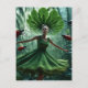 Postal Mujer girando en un vestido hecho de insecto de pl