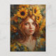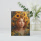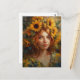 Postal Mujer hermosa con girasoles
