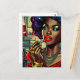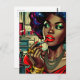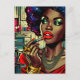 Arte de Guay ai que representa a una colorida mujer afroamericana de estilo cómico que se pone un lápiz de labios en la cocina, mujer de color al estilo retro.