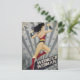 Postal Mujer maravilla retro ciudad Sunburst and Stars