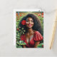 Comparta un estallido de belleza y alegría con esta impresionante postal de campo de fresa, que presenta a una mujer radiante con un vívido vestido rojo rodeado de frondosas hojas verdes, fresas maduras y flores brillantes. Su cálida sonrisa, su grueso cabello rizado y la delicada flor que se esconde en su cabello crean un retrato cautivador que celebra la abundancia de la naturaleza y la elegancia femenina. Perfecto para enviar mensajes sentidos, recolectar o enmarcar como arte en miniatura, esta postal es un conservador único para los amantes de los temas botánicos, retratos coloridos y diseño inspirado en el jardín. Ideal para notas personales, saludos de temporada o como un recuerdo encantador. Ya sea que se envíe por correo para alegrar el día de alguien o se muestre como una pequeña huella de arte, esta postal de campo de fresa es una manera deliciosa de celebrar la naturaleza, la belleza y la vibrante arte.