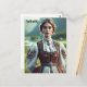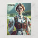 Esta imagen retrata a una mujer noruega con atuendo tradicional de Bunad, reflejando la elegancia cultural y el patrimonio de Noruega. El Bunad es un conjunto muy bien diseñado, con ricos bordados y colores vibrantes, que a menudo simbolizan regiones específicas. El conjunto incluye un vestido a la medida con motivos detallados, complementado por un delantal y una blusa blanca con mangas hinchadas. Un broche de plata o un rebanado le dan un toque de artesanía noruega. Su vello y su serena expresión de estilo impecable armonizan con el paisaje noruego suavemente borroso en el fondo, mejorando la autenticidad de la escena. Esta vestimenta es una orgullosa representación de la historia y tradición artística de Noruega.