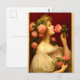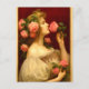 Postal Mujer oliendo una rosa retro era victoriana