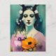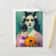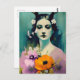 Una hermosa mujer pagana con cánticos y flores rosadas y naranjas generó arte