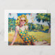 Postal Mujer rubia en terreno Naranja