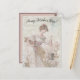 Personaliza esta postal para un regalo especial del Día de la Madre. A mamá le encantará este diseño de Grano de Flores de Vintage Distressed Vintage que presenta a una mujer victoriana/vintage con un fondo de collage y una casa de campo recolectando agua y granos con mucho espacio para un saludo o mensaje personal.
