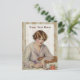 Esta postal presenta un ilustracion vintage de 1918 de una joven mujer escribiendo y enviando un paquete de cuidados a su novia.