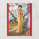Disfruta de este anuncio de China de principios del siglo XX. Estas imágenes, producidas principalmente en Shanghái en las décadas de 1920 y 1930, mostraron una mezcla de diseño oriental y occidental, así como representaciones de mujeres modernas y belleza de Shanghái. Este anuncio de cigarrillos vintage presenta a una hermosa mujer que lleva puesto un bata amarilla delgada cortada con bufanda roja y blanca, en medio de un hermoso entorno exterior con árboles y arquitectura de piedra. Esta "mujer moderna" representa las cambiantes normas de belleza del periodo. En la parte trasera de nuestras postales se encuentran las fronteras chinas vintage art deco-era y los farolillos rojos (diseñados con elementos de<a target="_blank" href="https://www.vecteezy.com/">vecteezy.com</a>).
