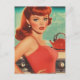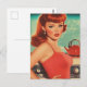 Postal Mujer ventilado en la cocina con un vestido rojo