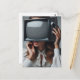 Postal Mujer ventilado sostiene televisión frente a su ca