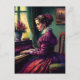 Postal Mujer victoriana tocando el piano, pintura al óleo