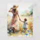 Esta impresionante obra de arte representa a una madre y un niño caminando por un campo de flores. El texto se puede eliminar para dejar la parte posterior en blanco. Las tarjetas postales son fáciles de exponer como piezas de arte en miniatura añadiendo un marco. Gráfico asistido por IA comprado con uso comercial. Obra de arte: RedHeronLighthouse