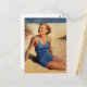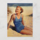 Cuartos de Mujeres Retro Vintage Swim Suit Beauty, arte clásico de postal añejo con una belleza de playa de los años 40!