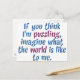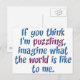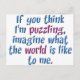 (varios productos seleccionados) "Si crees que me desconcerto, imagina cómo es el mundo para mí". Este diseño fue creado pensando en niños con necesidades especiales para aquellos que no se toman el tiempo de entenderlos. Puedes encontrar este diseño en camisetas, imanes, tazas, botones, regalos y mucho más!