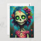 Este ilustracion floral de muñecas zombi presenta ojos verdes brillantes, ropa rosada podrida y una corona de rosas en decadencia. Pintado en vivos colores con un encanto deslumbrante, es un diseño sorprendente para los amantes de Halloween, coleccionistas de horror o fanáticos oscuros de cuentos de hadas.