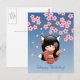 Postal Muñeca Kitsune Kokeshi - Cumpleaños de Geisha Zorr