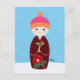 Postal Muñeca Kokeshi con camellia