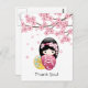 Postal Muñeca Kokeshi de Primavera - Geisha Japonesa Grac