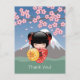 Postal Muñeca Sakura Kokeshi Roja - Cute Geisha Gracias