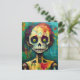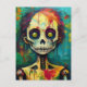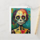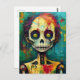 En este ilustracion abrumador hay una muñeca zombi cosida con ojos amarillos brillantes, texturas de pintura manchadas y colores grises vívidos. Un diseño espeluznante y expresivo perfecto para los amantes de Halloween, los coleccionistas de terror o el espeluznante arte por correo.