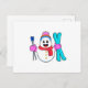 Postal Muñeco de nieve como esquiador con esquíes