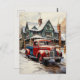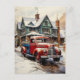 Viejo pueblo de Navidades de invierno y viejo camión rojo en un paisaje nevado