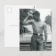 Esta sexy postal presenta una fotografía vintage de un joven caliente y sin camiseta que muestra sus músculos a la cámara.