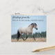 ¿Has visitado recientemente la Cordillera de Caballos Silvestres de la Montaña Pryor cerca de Lovell, Wyoming? Envíe una postal a su familia y amigos mostrándoles este precioso Pryor Mustang, un semental llamado Cloud's Pride. Cloud's Pride es el asombroso hijo de piel de gallina del legendario estallido palomino, Cloud, que era querido por muchos.