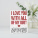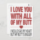 Mi tarjeta postal de San Valentín divertida - Ah Día de San Valentín ese día sagrado para los amantes de todo el mundo. Celebra tu San Valentín con esta postal graciosamente honesta y extravagante: "Te amo todo mi trasero. Debería decir mi corazón, pero mi trasero es más grande" Esta postal con suerte derritirá el corazón y cosechará el hueso gracioso de cualquiera que la reciba. No hay traseros.