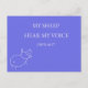 This minimalist Christian postcard features the Bible verse “My sheep hear My voice” (John 10:27) with a soft, hand-drawn sheep illustration on a calm blue background.