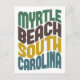 Chunky, audaz y divertido este diseño tipográfico fresco dice Myrtle Beach South Carolina de una manera caprichosa con colores retro ondulados en azul, marrón, oro y verde. ¡Propieten o regalen el regalo de Myrtle Beach, SC hoy!