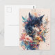 Postal Mystical Wolf in Vibrant Watercolor Blooms