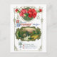 Un cumpleaños feliz para ti, sólo una pequeña línea, querida! En tu mañana natal. "¡Muchos años rosados sean tuyos, querida! ¡Y todo sin espinas!" Una postal de cumpleaños vintage de 1912, con una escena rural de un molino con una rueda de agua. Hay dos pequeñas herraduras colgadas de los adornos decorativos que rodean los claveles rojos.