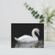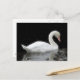 Un elegante cisne blanco con un efecto fracturado resplandece contra un cielo estrellado mientras nada con gracia por la superficie del agua.