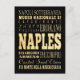 Este arte de tipografía de la ciudad de Nápoles de Italia enumera las famosas atracciones de la ciudad. Moderno estilo vintage. Elegante y elegante.