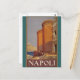 Afiche de viaje de NAPOLI (1920) que muestra a Vesubio y la bahía de Nápoles desde la terraza de una fortaleza.