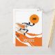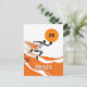 Este diseño de postales de dos colores blanco-naranja presenta a un atleta de baloncesto preparándose para un pedazo. Se trata de una tarjeta de personalizable donde se puede modificar el número de la camiseta y el lema principal.