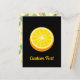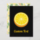 Icono de naranja a la mitad. Color de fondo personalizado. Texto personalizado.