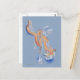Postal Naranja Pastel de gato y tabú blanco sobre azul