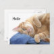 Naranja tabby kitty cat en una típica pose de gato dice hola postal de foto. El texto puede cambiarse o eliminarse fácilmente