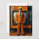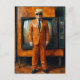 El hombre naranja Trump con traje naranja frente a una televisión retro abandonada, divertida IA generada por el arte