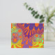 Esta colorida postal fractal tiene colores brillantes y vibrantes del arcoiris, como naranja y púrpura. Esta postal se puede usar para fiestas de cumpleaños, notas de agradecimiento, guardar la fecha, R.S.V.P. y bodas. Si a alguien le gustan los diseños abstractos brillantes y vibrantes, esta es la postal perfecta para enviarlos. Puede elegir entre papel mate o semibrillante antes de comprar.