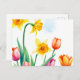 Postal Narcisos y Tulipanes Vibrantes al Acuarela