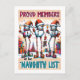 Three long-legged snowmen in festive winter gear raise their drinks in celebration, surrounded by gifts and a glowing Christmas tree. With cheeky “Proud Members of the Naughty List” text, this scene brings humor and holiday spirit together.