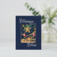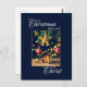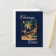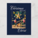 Envía el sentimiento de que "los Navidades comienzan con Cristo" con este oscuro diseño azul con una foto de la natividad debajo de un árbol de Navidad para decir Feliz Navidad con una perspectiva cristiana.