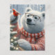 Un adorable oso polar y un cardenal decoran un árbol de Navidad en el bosque juntos IA generó arte